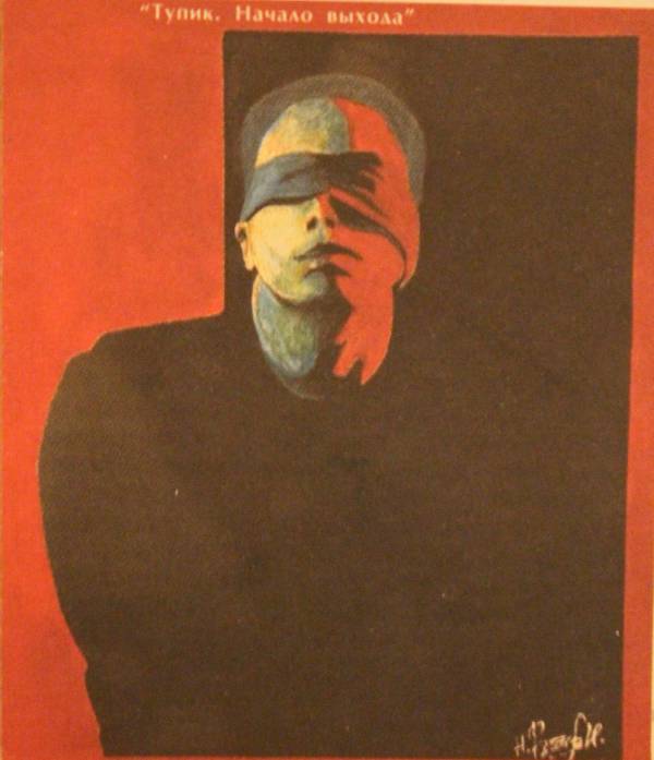 Да, он хорошо рисует, много вставляется, но не это главное. А то главное, что он – нормальный сильный мужчина. Сильный и физически, и морально. Уже в первый год своего последнего тюремного срока Николай нарисовал картину, которую назвал так: «Тупик. Начало выхода». Мужчина со связанными сзади руками и с повязкой на глазах, только что вышедший на свет из черного проема. Таким он тогда видел самого себя в тот момент, в самом начале девятилетнего срока, – человеком, начавшим выход из мрачного тупика. С повязкой – чтобы не обжечь глаза после долгого пребывания во мраке.