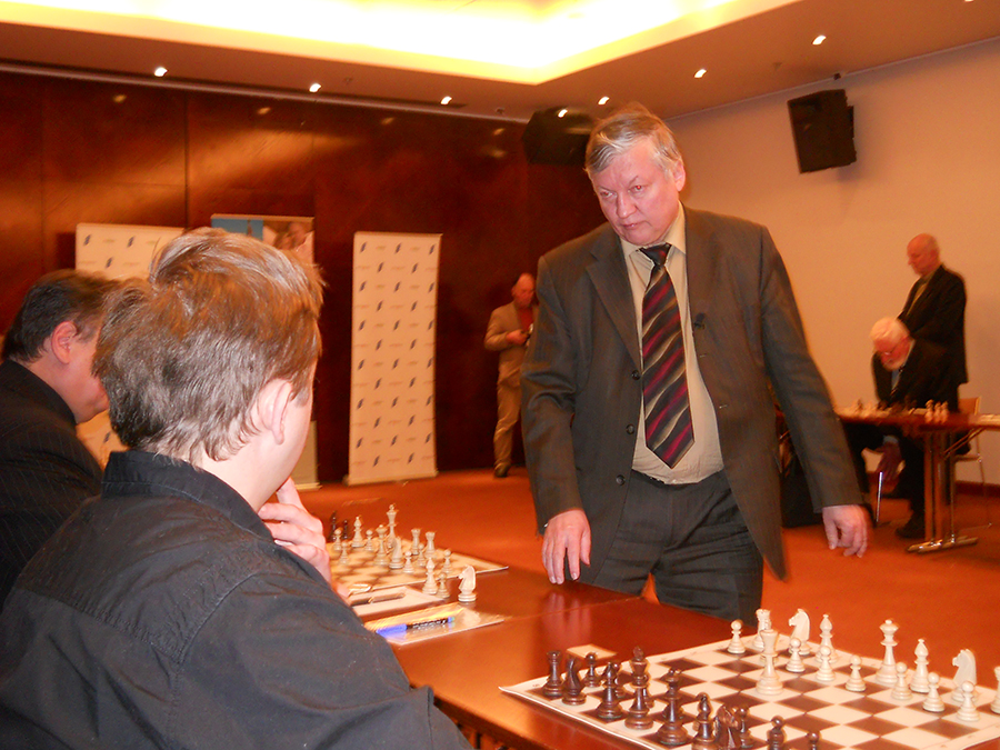 Легендарный гроссмейстер дал в Таллинне сеанс одновременной игры на семнадцати досках. Единственную ничью с экс-чемпионом мира сделал местный любитель шахмат, которому в предыдущий визит Анатолия Карпова в Эстонию улыбнулась еще более крупная удача: он разбогател на 100 000 крон. Двенадцатый чемпион мира, впоследствии не раз подтверждавший это звание, прибыл в Таллинн по случаю 95-летия со дня рождения Пауля Кереса и проводящегося в связи с этим традиционного шахматного фестиваля.