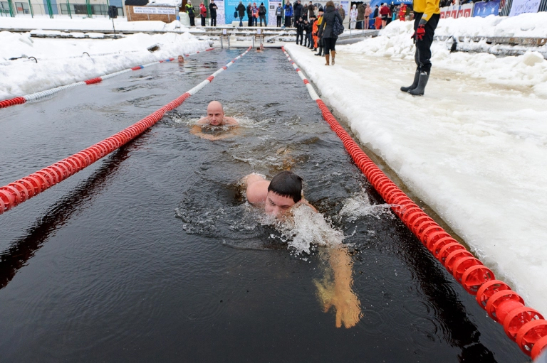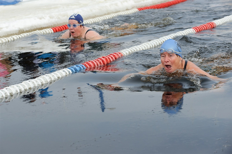 Учитывая, что на дворе январь, а не июль, погода для купания, можно сказать, выдалась близкой к идеальной: легкий морозец, ветра почти нет, с неба ничего не сыплет. Однако сказать, что мне не терпелось быстрее раздеться и погрузиться в эту дышащую адским холодом черную бездну, разверзшуюся меж белых снегов, было бы, мягко говоря, преувеличением. Даже несмотря на то, что другие участники и участницы проплывали эти 25 метров как ни в чем не бывало. Это ж все опытные моржи! Их летом, поди, в воду не загонишь, а зимой – хлебом не корми, дай поплавать.